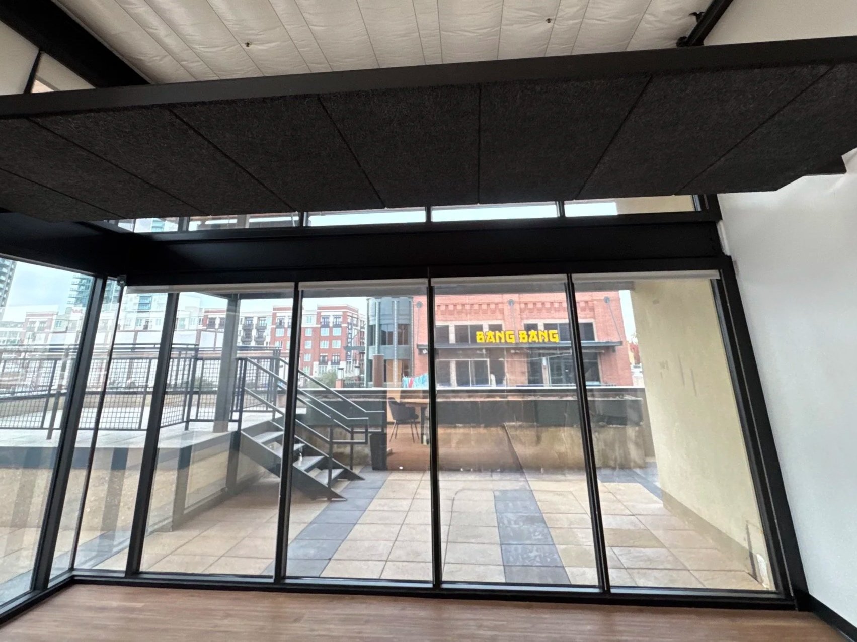 Office meeting room painted in tricorn black and extra white.